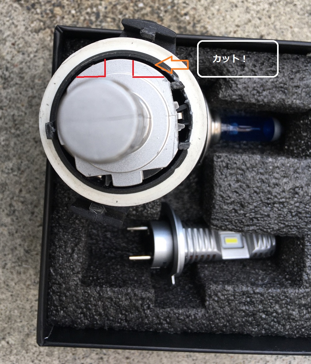 実は、2年ほど前に田舎の街灯の無い田んぼ道、それも雨上がりで道が濡れている状態の道で全灯ONにもかかわらず見えなくて、怖い思いをしました。そこでフォグを黄色にしようと思って、ついでにLED化したのですが、それがなんと白色だった! で今回、HIDのロービームを明るいLEDにしようとLEDバルブ購入したのですが、何を勘違いしたかH7バルブ型を購入してしまいました。 捨てるのももったいないなあと思ってヒラメキました、ハイビームはH7じゃないですか、そこで先のLED H7は、ハイビームに収まりました。