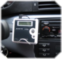 さて接続ですが、通常カーステにはAUXの端子がついていて、外部信号が入れられます。そこで、オーディオ端子とミニプラグのケーブルで接続。電源は、プレーヤー自体が充電で14時間連続再生可能なので、特にとらず。通勤のみだと、1週間以上、持ちます。