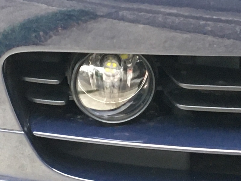 ヘッドライトをHIDに変えてから、やはり雨の日、それも街灯もガードレールも無い田舎道で全然見えなくて怖い思いをしました。その時はフォグも点けてみたのですが、初めから装着されていた純正のごく普通のハロゲンバルブのは、全く役に立たない状態でした。そこでネットでイエローバルブ探したらLEDで80w相当とかのを見つけ、さらにBMにも装着した書き込みも有って早速プチしました。 で、装着してみたら、あれ、黄色くないぞ! 発注データよく見直したら、6500ケルビンでした。 |